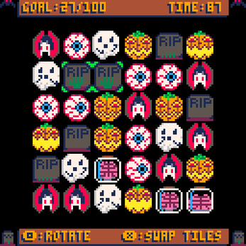 This is my second ever released game, I'd love to know what you think! I realize this game is pretty barebones even for a match-3 clone, and while I may decide to build upon it with more features and objectives in the future, at least for now I'm happy with it being a short, fun little Halloween minigame. So I really hope you enjoy, and Happy Halloween to all!